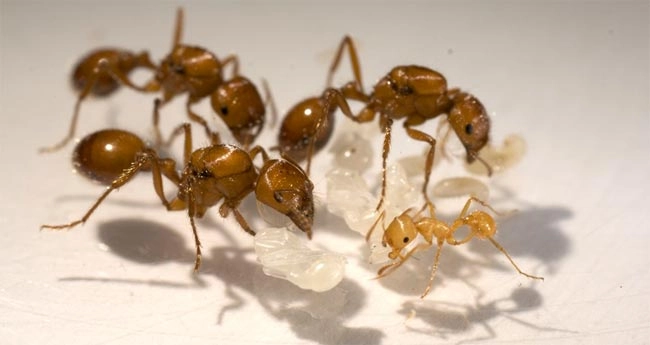 The scaling of energy use may be associated with colony size-related changes in behavior. An important behavioral pattern in colonies of ants and other social insects is the division of labor — when different workers specialize in different jobs, like brood care and foraging. Tate Holbrook investigated how colony size influences division of labor in P. californicus. First, he carefully painted ants with unique color combinations so he could identify individual workers within each colony. He then watched colonies of different sizes for many hours, recording which ants performed which jobs. Holbrook discovered that as colony size increases, so does division of labor. In smaller colonies, individual workers perform a variety of jobs, but in larger colonies workers tend to specialize on specific jobs. It remains to be tested whether higher division of labor makes larger colonies more efficient.
