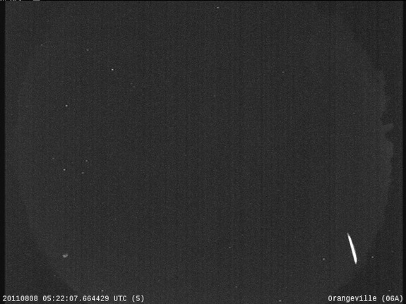The fireball was detected by all-sky cameras from the Southern Ontario Meteor Network at 1:22 a.m. EDT (0522 GMT) on Aug. 8.