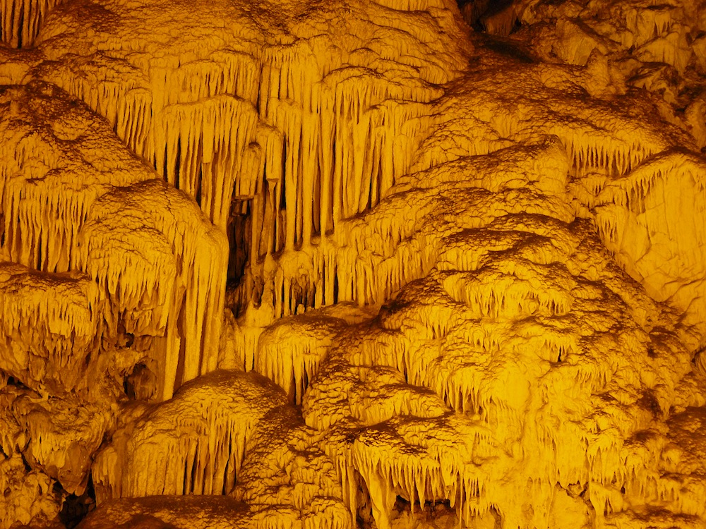 A cave wall on the island of Antiparos, Greece. Cave formations such as stalactites and stalagmites are known by geologists as "speleothems."