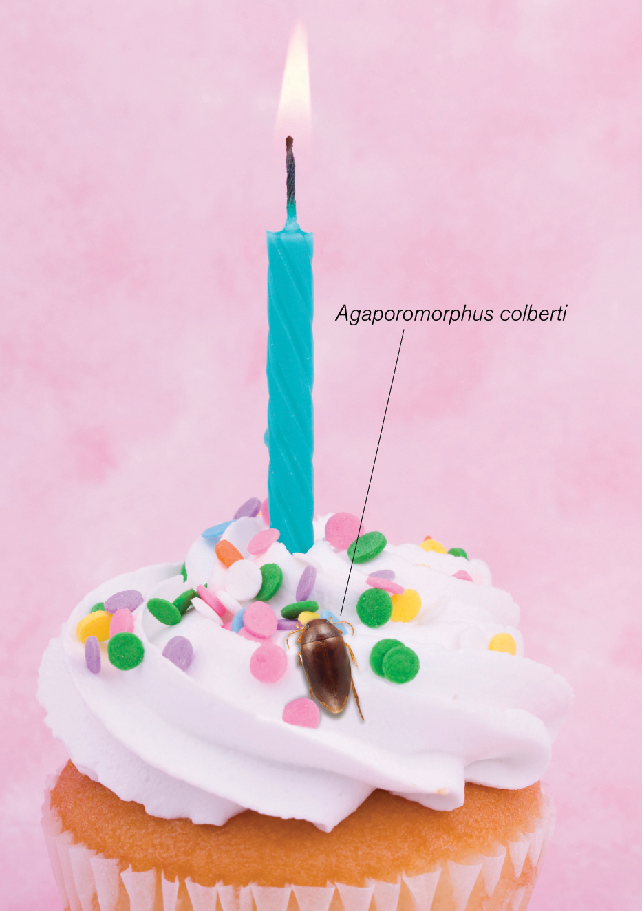 Late-night political satirist Stephen Colbert has not just one but two bugs named for him. As a birthday gift in 2009, Arizona state University researchers named a species of diving beetle Agaporomorphus Colberti, to honor Colbert. In 2007, a trapdoor spider discovered on the California coastline called Aptostichus stephencolberti. A. stepehncolberti is also closely related to A. angelinjolieae, named after the actress Angelina Jolie.