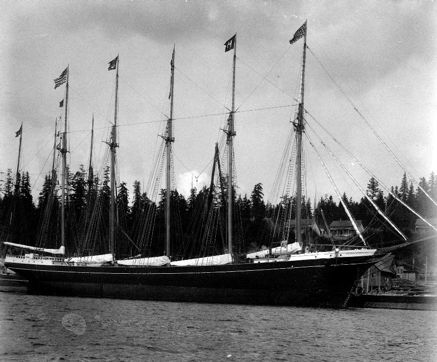 The five-masted schooner was built in 1903 by the Hall Bros., a shipbuilding company, in Port Blakely, Wash.