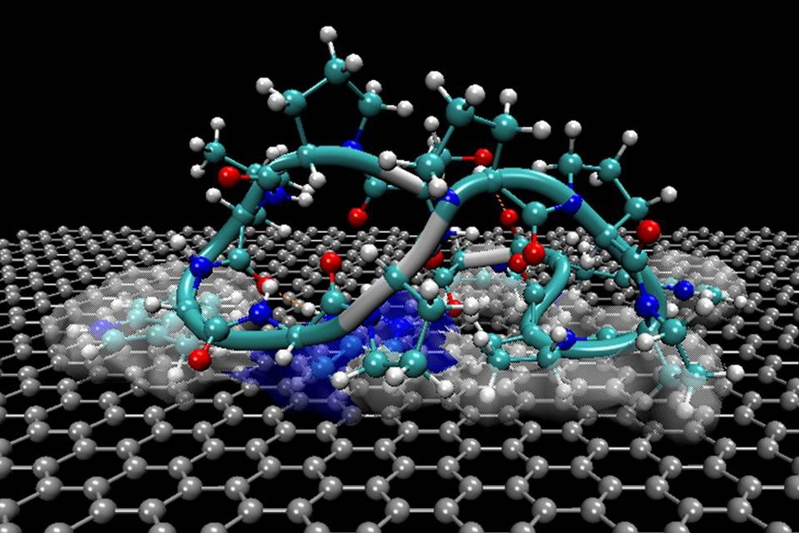 Researchers at the University of Washington have demonstrated how peptides, or short chains of amino acids, assemble by themselves into nano-sized structures on solid surfaces such as graphite and other layered minerals.
