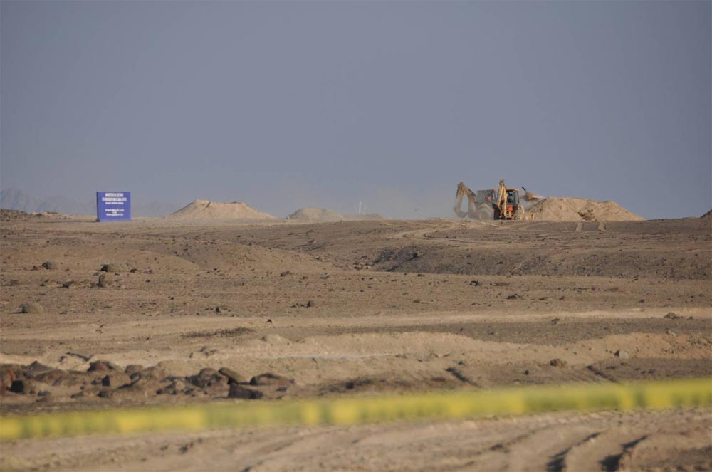 The lines and cairns are being destroyed by modern-day construction. Researchers say that this image shows bulldozers from Peru's Ministry of Energy. The blue sign is from the Ministry of Culture and says that this is a protected archaeological area. [Read full story]