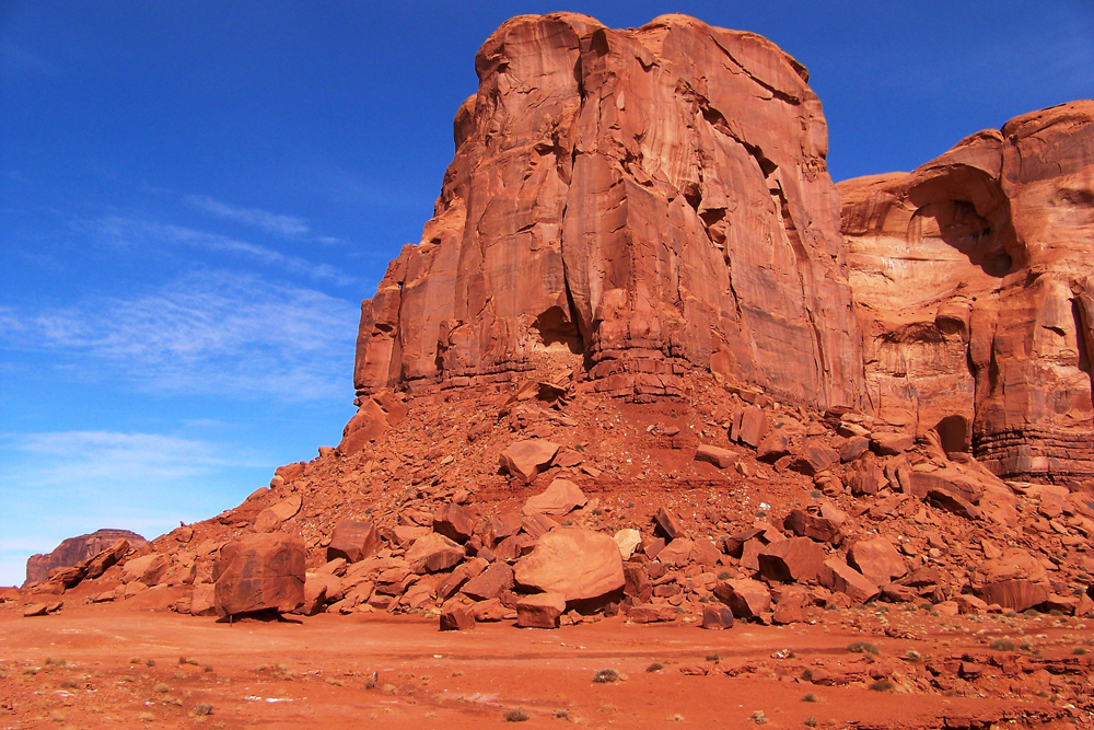 Monument Valley is young in terms of geological time. During both the Paleozoic and Mesozoic eras, this region of the North American continent was often submerged by warm ancient seas with the last great flooding occurring only some 70 million years ago. Materials from the ancient Rocky Mountains eroded away and washed into the shallow seas, laying down layer upon layer of sediment that over time cemented together to form sandstone hundreds of feet thick.