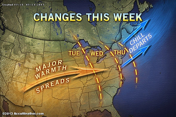 It felt more like late March than mid-May across the Midwest and the interior mid-Atlantic on Sunday and Monday as cold Canadian air penetrated the United States once again this spring.