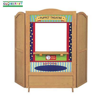 Description: This recall involves all 4-in-1 dramatic play theaters with model number G51062. The model number is printed on a sticker affixed to the bottom of the center crossbar and on the assembly instructions. The toy has two interchangeable panels with different themes on each side: a puppet theater and diner, or a doctor's office and post office. An assembled play theater measures 4-feet high by 3-feet wide and weighs about 46 pounds.