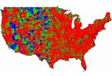 Animated Map: Starting with 10 cases in Los Angeles, how the flu might spread. Cases per one thousand people shown blue equals 1 or fewer red equals 100 or more. Credit: T. Germann et al., LANL