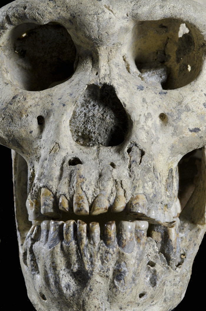 Unlike other Homo fossils, Skull 5 (whose face is shown here) combines a small braincase with a long face and large teeth — features that had not been observed together in an early Homo fossil until now.