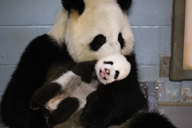 The Zoo Atlanta's twin panda cubs looking snuggly on the day of their birth, July 15, 2013.
