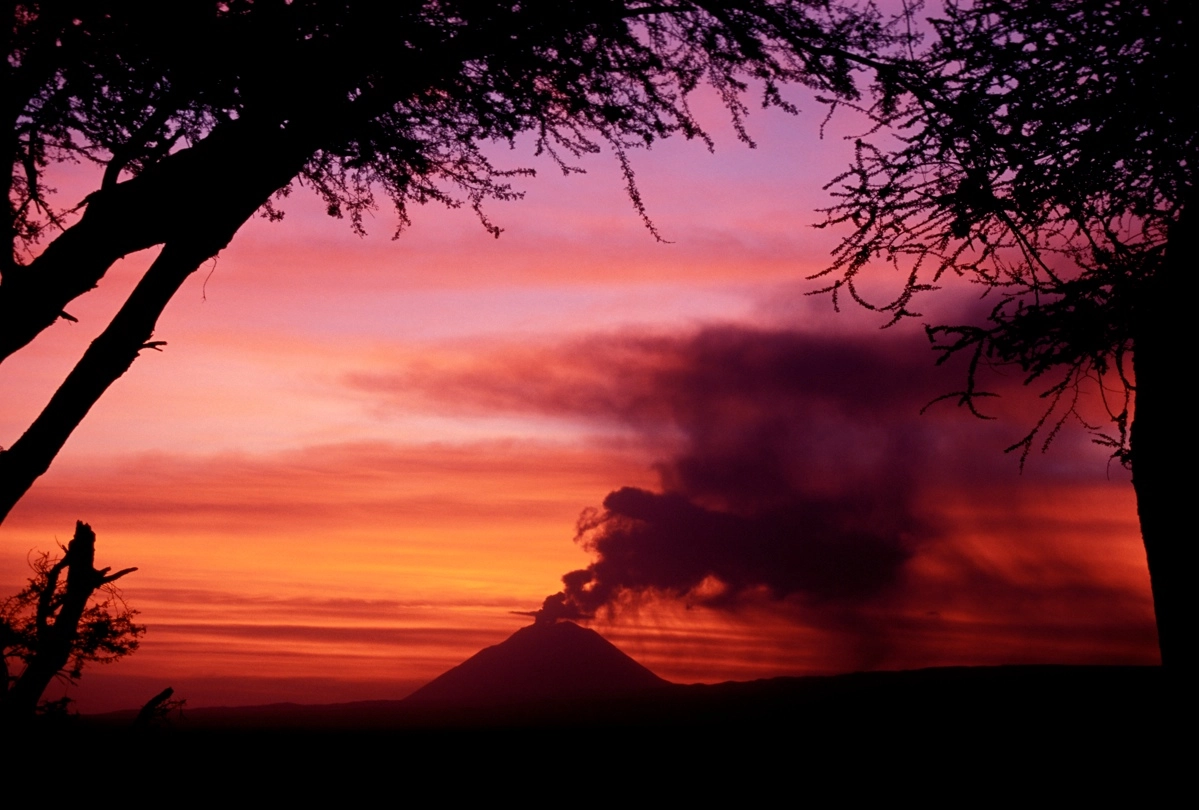 Coincidentally, the mountain sent up a stream of ash the same morning that Venus and Jupiter were visible in close conjunction with the moon. The coincidence is all the more meaningful because scientists think that Venus may play host to its own carbonatite volcanoes. Landforms seen on the planet's surface seem to have been made by low-temperature, slow-flowing lava, perhaps not unlike the goo that oozes from Ol Doinyo Lengai.