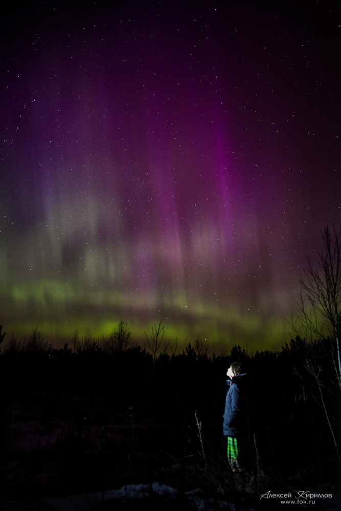 "I live in the eco-village in Kaluga region," skywatcher Alexey Kirillov told Space.com via email. "It is about 100 km [60 miles] from Moscow. Yesterday night it was possible to see great auras of northern lights here."