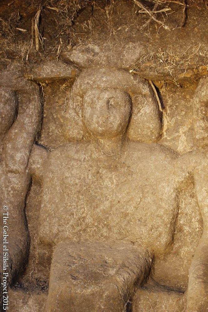 Statues of Neferkhewe, chief of the Medjay and overseer of foreign lands during the reign of Pharaoh Thutmose III and his family. These statues are in a cenotaph, or false tomb, at the Nile site Gebel el Silsila. Cenotaphs are shrines or memorials to the dead, but the bodies are interred elsewhere. (Credit: The Gebel el Silsila Survey Project, courtesy the Egyptian Ministry of State for Antiquities)