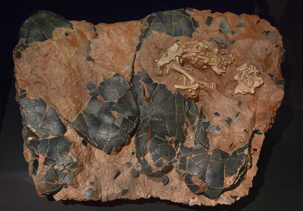 This fossil of a newly hatched trootontid laying on its egged siblings is an amazing find. The pattern of the eggs indicates the dinosaur had only one egg tube, matching the reproductive system of modern birds.