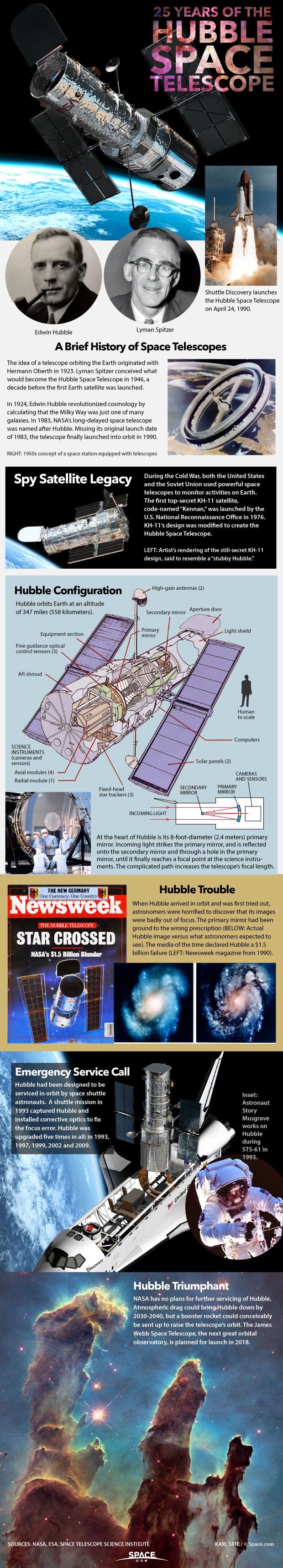 The Hubble Space Telescope, a joint project involving NASA and the European Space Agency, launched into orbit in April 1990 with a slightly flawed primary mirror. Spacewalking astronauts fixed the problem in 1993, and upgraded the observatory several more times over the years, with the last servicing mission launching in 2009.