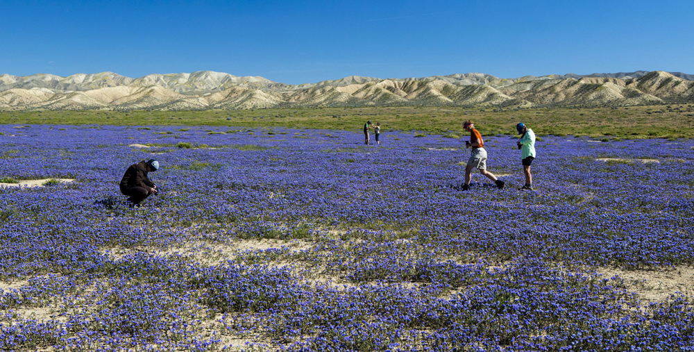 Photo Tip: Having people in the landscape adds scale. The flower is Phacelia ciliata.