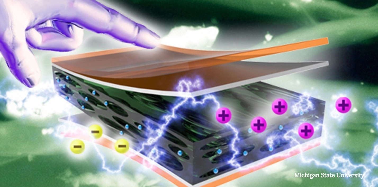 When they folded the film-like piezoelectric material, the voltage increased exponentially.