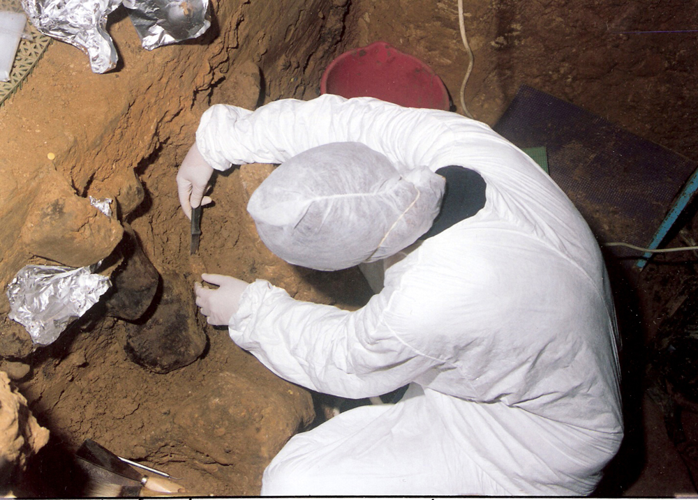 Excavations at the archaeological site of El Sidrón, Spain, are carried out using a "DNA clean" protocol to avoid contaminating the samples.