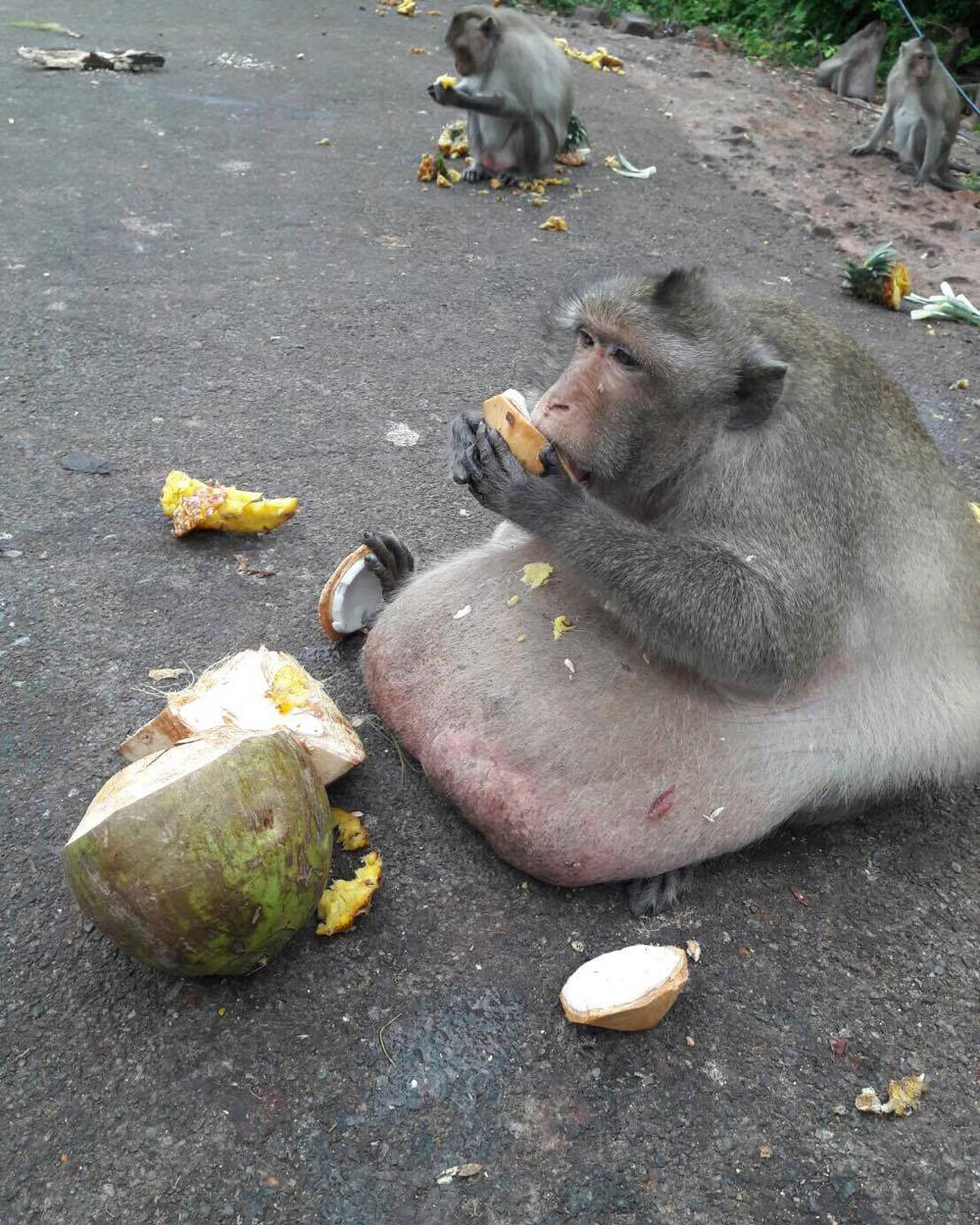 In Photos: Obese Macaque Gorges on Human Junk Food