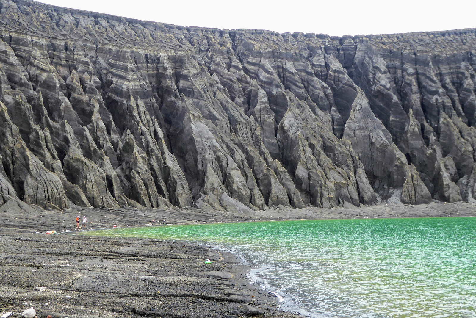 That's a particularly intriguing comparison because of a mystery Slayback discovered when he arrived on the island. Pale-colored streaks of material coming out of the volcano's cone, visible on satellite images, turned out, in person, to be sticky mud, not volcanic ash, which is pulverized rock. "I'm still a little baffled of where it's coming from," Slayback told NASA.