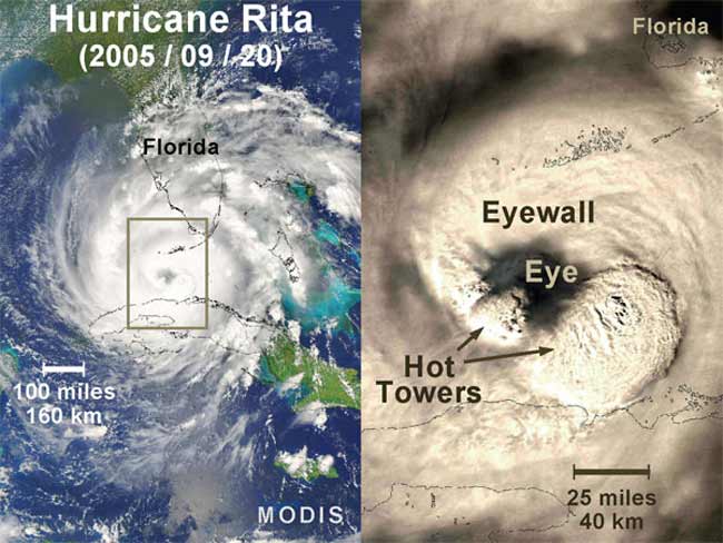 Using a satellite last summer to study hurricane Rita from above, scientists discovered that towering clouds near the storm's eye were good predictors of future storm strength.