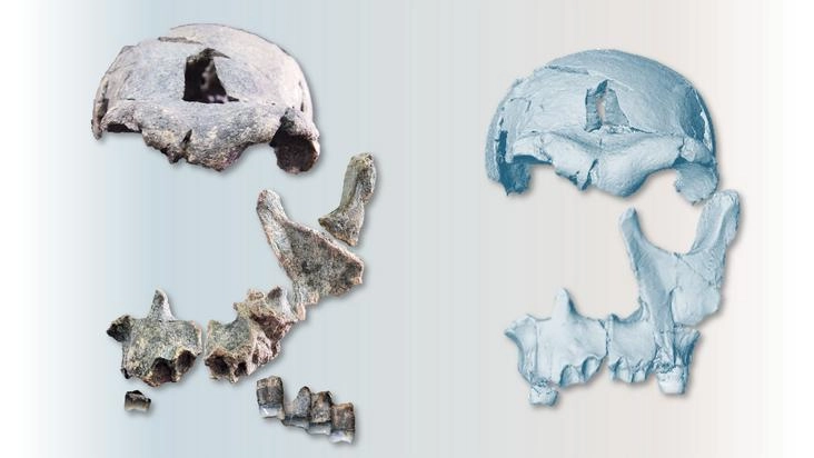 The rebuilt fossil skull, called DAN5, shares traits with Homo erectus, the first early human relatives to have modern body proportions and to disperse from Africa. But the skull also has some features associated with the earlier species Homo habilis. The findings suggest a complex evolutionary path from early human ancestors to H. erectus, researchers reported Dec. 16 in the journal Nature Communications.