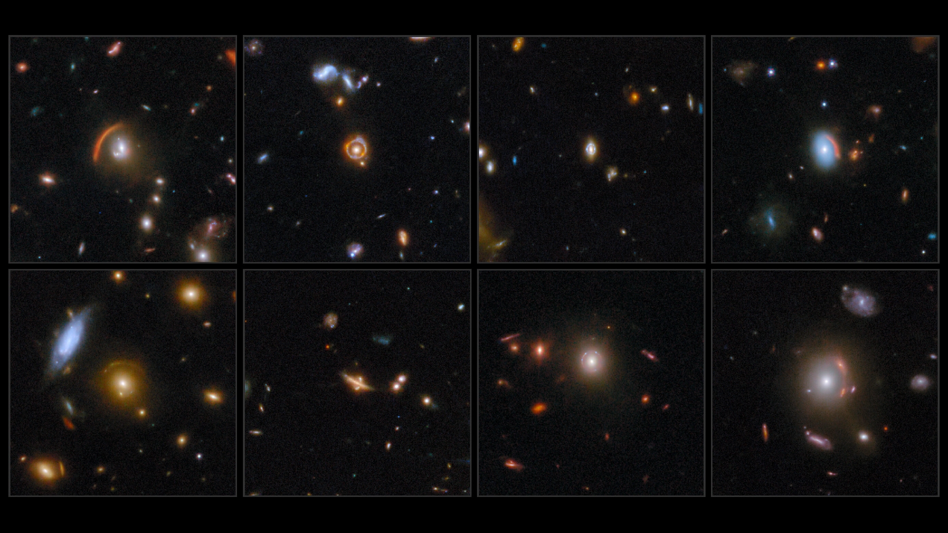 These spectacular new deep-field galaxy images come from a project called COSMOS-Web, one of the largest observing programs carried out with JWST. Scientists spent 255 hours pointing the telescope at more than 42,000 galaxies and found more than 400 possible examples of Einstein rings. The eight here are some of the most dramatic.
